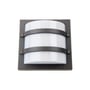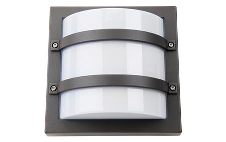 Firkantet LED vægarmatur i grafit med integreret skumringsrelæ. Leverer 540 lumen ved 3000K og har en levetid på 50.000 timer. IP65 og IK10 klassificeret.