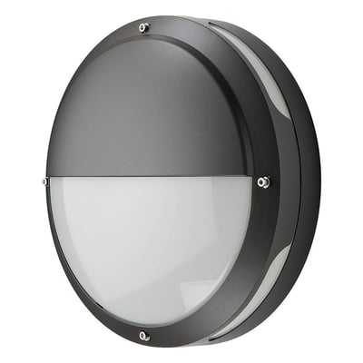 Rundt og vandalsikkert udendørs LED vægarmatur i klassisk design med halvafskærmning. Ideelt til boligblokke, rækkehuse og montering ved indgangsdøre.