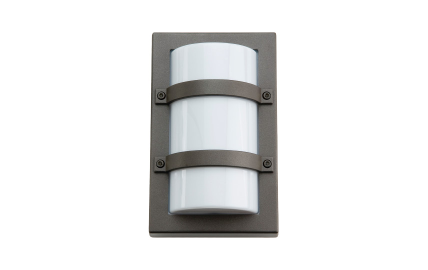 Firkantet, smalt og vandalsikkert udendørs E27 vægarmatur i klassisk design med 2 tværgående sikringsbøjler. Ideel til facadelys, sti-belysning og montering over døre.