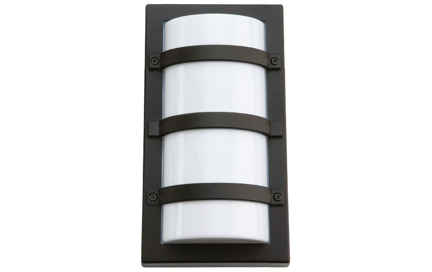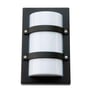 Firkantet, smalt og vandalsikkert udendørs vægarmatur i klassisk design. Med 2 tværgående sikringsbøjler. Ideel til facadelys, sti-belysning og montering over døre.