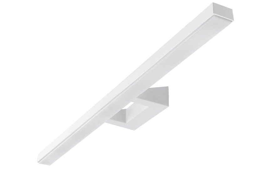 Slankt og moderne badeværelsesarmatur til montering over spejl eller på spejlskab. Kan også bruges som maleribelysning. Dæmpbar med fasedæmp.