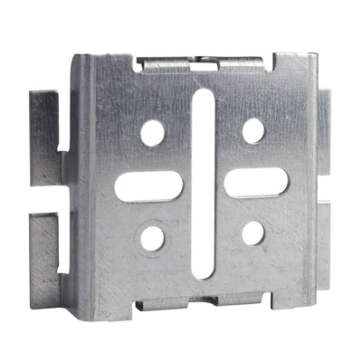 Vægbeslag/montageplade i stål, elforzinket. Mål: 72 mm højde, 90 mm bredde. Kan monteres lodret eller vandret.