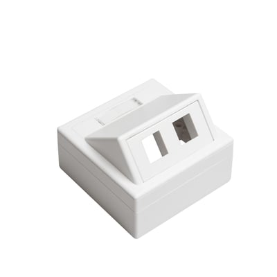 Leviton 85x85mm vinklet vægudtag til 2 keystone konnektorer. Dataudtaget er kompatibelt med Brand Rex Keystone konnektorer og har tekstfelt. Kan monteres direkte på væg.
