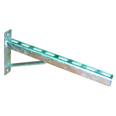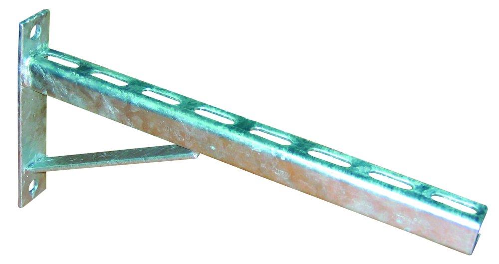 Varmgalvaniseret vægkonsol til direkte montering på væg eller vægskinne. Maksimal belastning skal være jævnt fordelt.