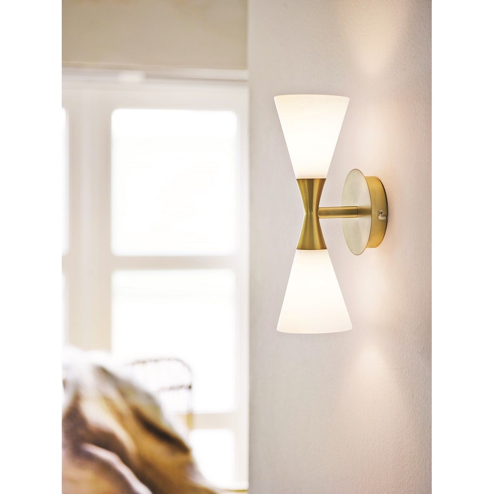 Stilfuld væglampe i messing med to E14 fatninger. Perfekt til at skabe hyggelig belysning i ethvert rum.