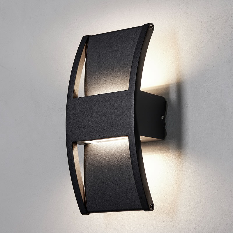 Elegant og robust væglampe i sort metal, der passer perfekt til moderne arkitektur. Lyskeglerne op og ned skaber flot effekt og behagelig stemning.