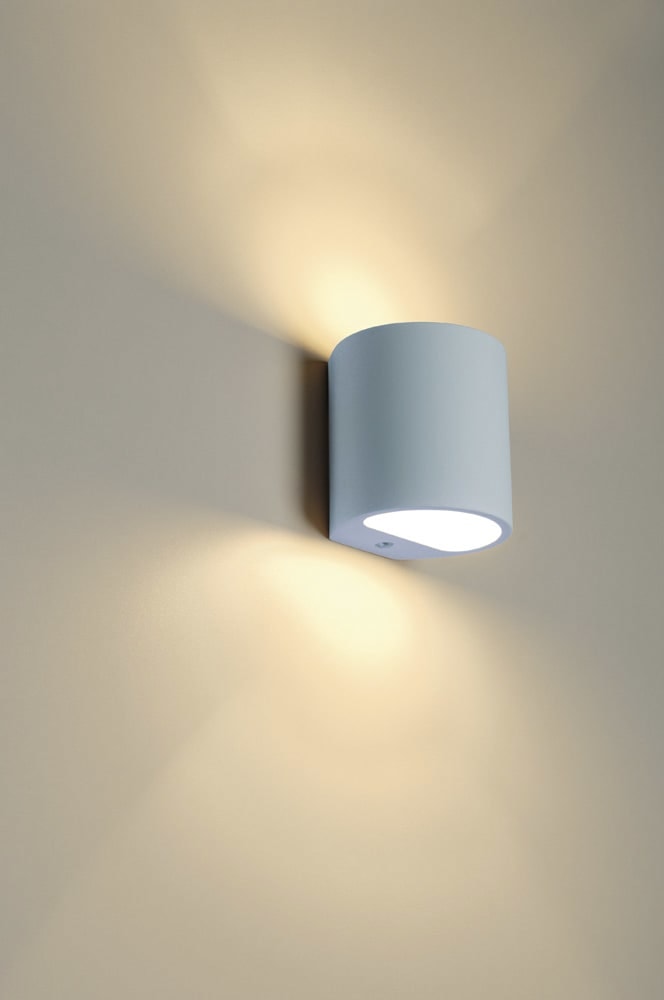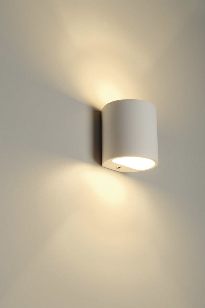 PLASTRA 104 væglampe i gips med et stilrent design. Forberedt til G9 halogenlyskilder og nem tilslutning til 230V. Kan males og dekoreres efter egen smag.