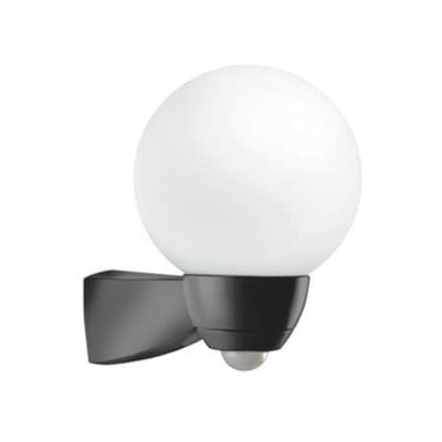 Væglampe med integreret bevægelsessensor og 130° detekteringsvinkel. Komplet med lampeunderdel og opalglas. Nem montage med enhånds stiksokkel.