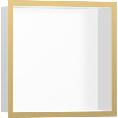 Hansgrohe XtraStoris Individual vægniche med designramme og tætningssæt. Mat hvid nicheindsats. Til nybyg og renovering. Dimensioner: 300 x 300 x 100 mm.