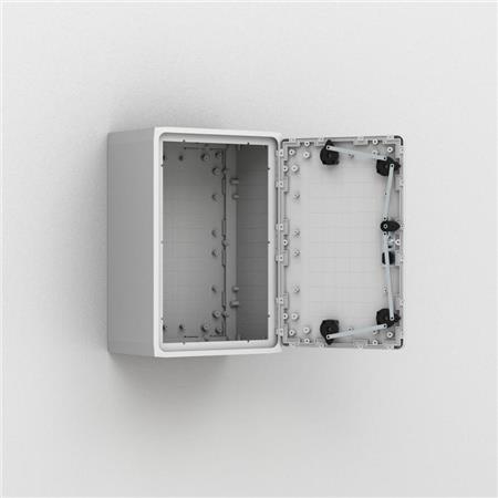 Dette vægskab er fremstillet af glasfiberforstærket polyester og har et UDPT-vindue af polycarbonat. Skabets modulære design inkluderer monteringshuller på bagsiden for nem vægmontering med vægmonteringsbeslag, stangmontering med EPF-monteringssæt eller gulvplacering med soklen UPP eller DIN-basis UAF og UMPS.