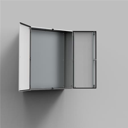 Kabinet: 1.5 mm lakeret stål. Flange: 1.4 mm lakeret stål. Dør: 2 mm lakeret stål. Monteringsplade: 2 mm galvaniseret stål / 2.5 mm MAD1001030R5 og derover.