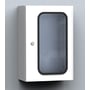 Glasfiberforstærket polyester vægskab med rude af polycarbonat. Mål: 615x415x230 mm. Til direkte vægmontering.