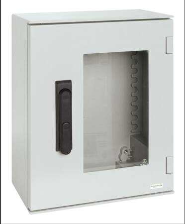 Vægskab 7035 i polyester med rude og 3 punktlås. Mål: 847x636x300 mm. Ideel til beskyttelse og kabelstyring.