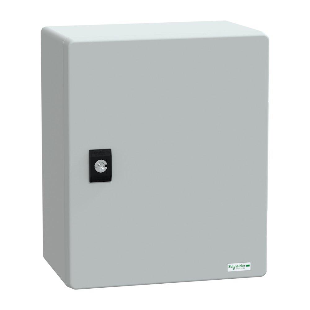 Dette vægskab (model PLM3025) fra Schneider Electric er udført i RAL7035 polyester og måler 308x250x160 mm. Det giver god beskyttelse mod indtrængning af vand og har optimal kabelstyring.