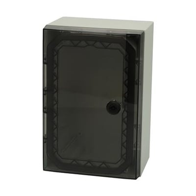 Vægskab med transparent låg, 1 lås og hængsel på lang side. Uden monteringsplade. IP66, RAL7035.