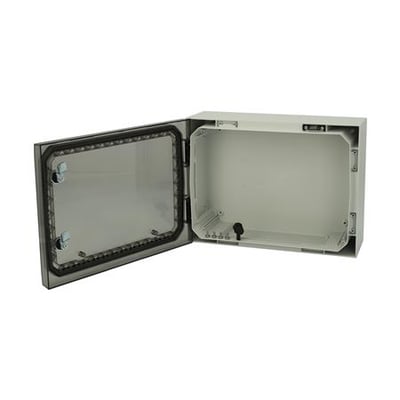 Vægskab med transparent dør, PUR pakning og 2 låse. Mål: 300x400x150 mm. IP66, RAL7035.