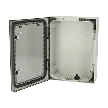 Vægskab med transparent låg, 2 låse og hængsel på lang side. Leveres uden monteringsplade.