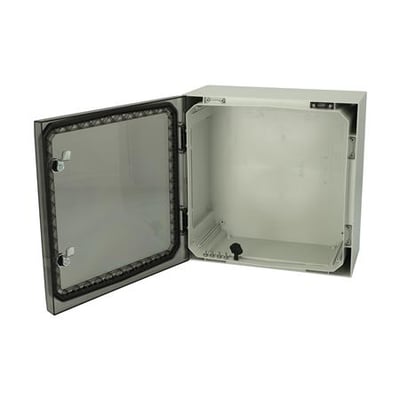 ARCA 404021T vægskab med transparent dør, PUR pakning og 2-punkts låsesystem. Mål: 400x400x210 mm, IP66, RAL7035.