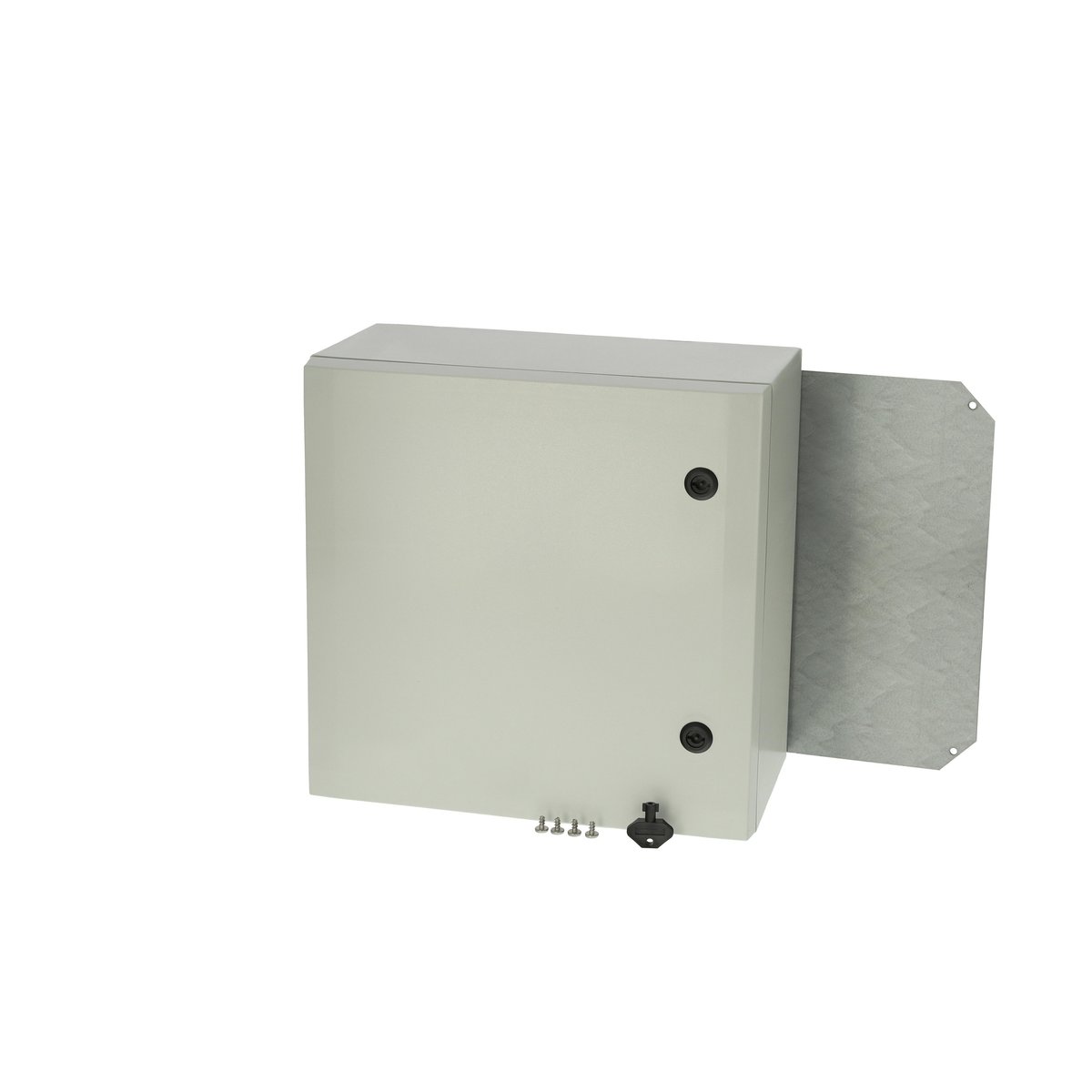 Arca vægskab i polycarbonat med IP66-klassificering. Leveres med gråt låg, 2 låse og hængsel med plade. Inkluderer montageplade.