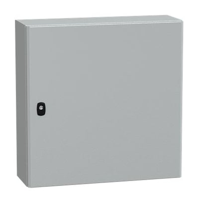 Spacial S3D vægskab i stål med IP66-beskyttelse og slagstyrke IK10. Ideel til industri og installation.
