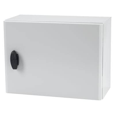Spacial S3D vægskab i stål med IP66-beskyttelse. Robust konstruktion med bukket og svejset krop. Ideel til montage og beskyttelse af elektrisk udstyr.