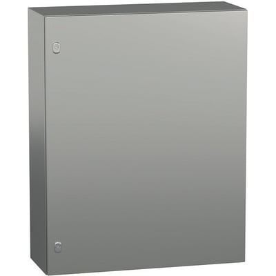 Spacial S3X vægskab i rustfrit stål. Fremstillet af en stålplade, der er bukket og svejset i hjørnerne. Materiale: rustfrit stål AISI 304L eller AISI 316L.