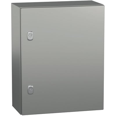 Spacial S3X vægskab i rustfrit stål. Fremstillet af en enkelt stålplade, bukket og svejset i hjørnerne. Materiale: rustfrit stål AISI 304L eller AISI 316L.