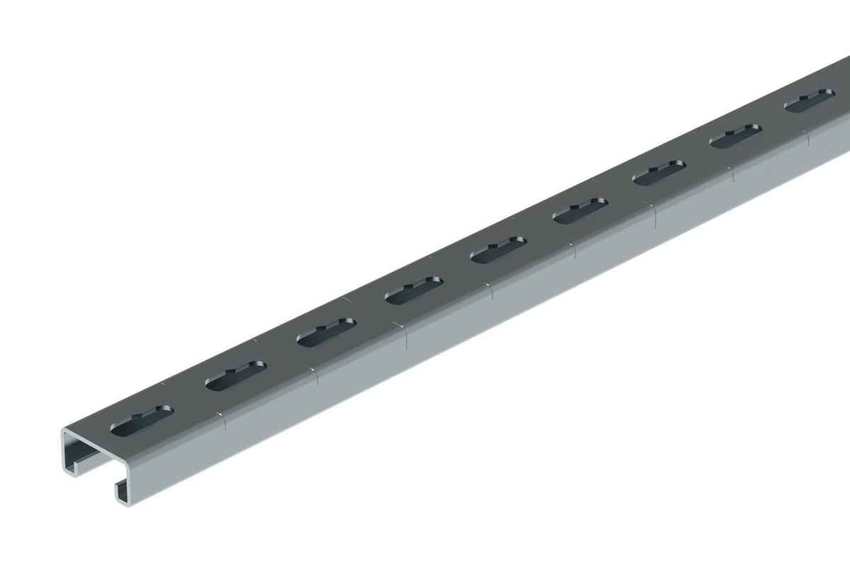 Vægskinne EVS 41x21x2 S ZM, 3 meter. Del af et komplet system med flere fastgørelsesmetoder og kompatibel med konsoller og føringsveje til forskellige understøtningsområder.