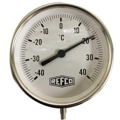 Refco vægtermometer med temperaturområde fra -40 til +40 grader og 1,5 meter kapillar. Vælg mellem bagflange eller front.