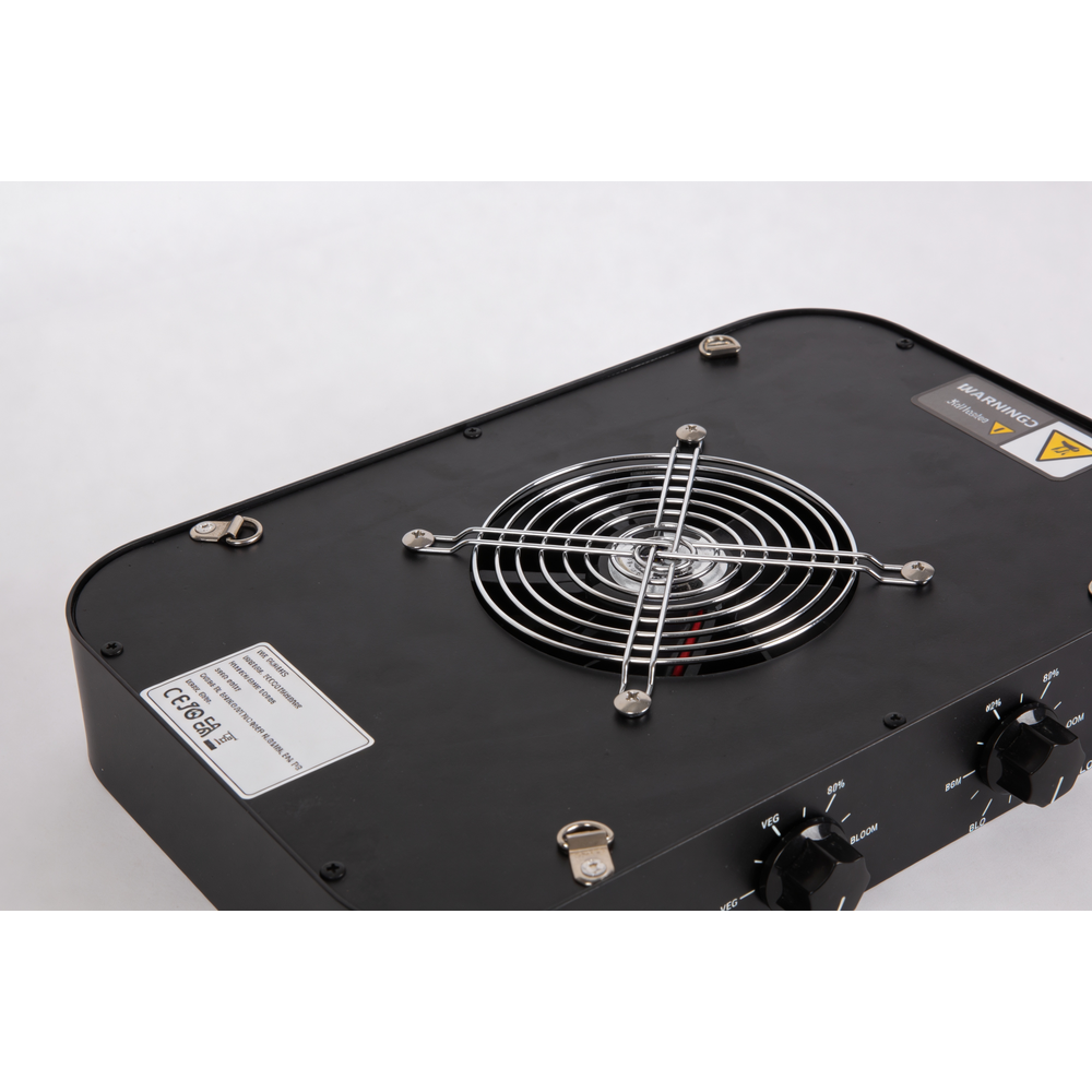 Effektiv 120W vækstlampe med fuldt spektrum, indbygget blæser og IP44-klassificering. Ideel til planter.