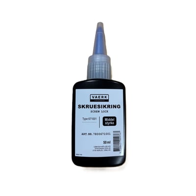 Denne skruesikring fra VAERK er designet til at fastholde og tætne skrue-, bolt- og møtrikforbindelser, gevindindsatse m.m. effektivt mod stød, vibrationer og konstante belastninger. Limen erstatter traditionelle låse- og spændskiver og bidrager samtidig til at forhindre udviklingen af spaltekorrosion.