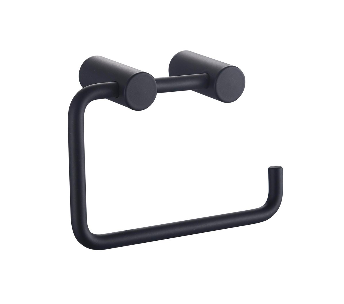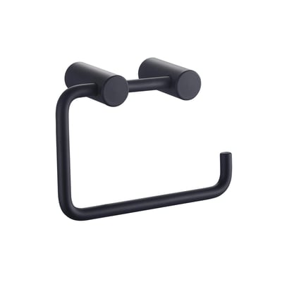 Denne toiletrulleholder kombinerer et moderne design med praktisk anvendelse, og dens matte sorte finish passer ind i de fleste indretningsstile.
