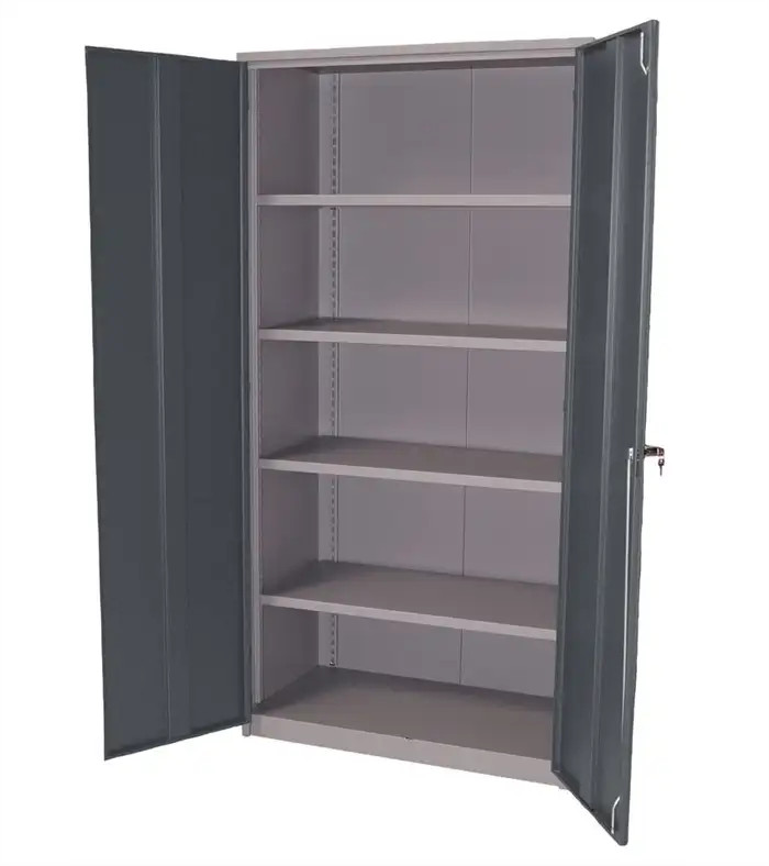 Skabet er udstyret med justerbare fødder, der sikrer, at det står stabilt, selv på ujævnt underlag. Det kan bære en maksimal belastning på 500 kg, hvilket gør det velegnet til opbevaring af tunge genstande.