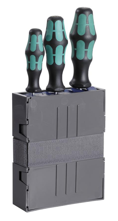 Smart værktøjsholder til sikker opbevaring. Fleksibel gummi kerne til forskellige værktøjsformer. Med velcro for nem montering i Tool Taco eller Tool Trolley Pro.