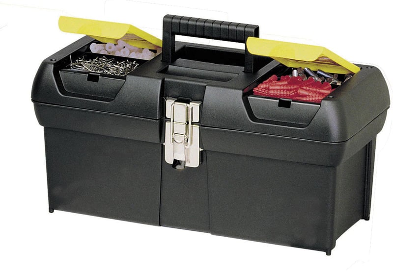 - Smart opbevaring: To separate gennemsigtige toplåg med i alt fire rum giver nem opbevaring af småting som skruer, søm og rawplugs.