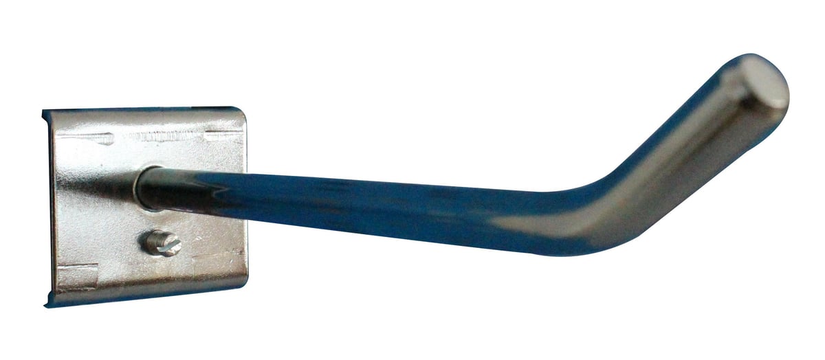 Værktøjskrog med en længde på 150 mm, 35 graders vinkel og en krogdiameter på Ø8 mm. Passer til hulplader med firkantede huller.