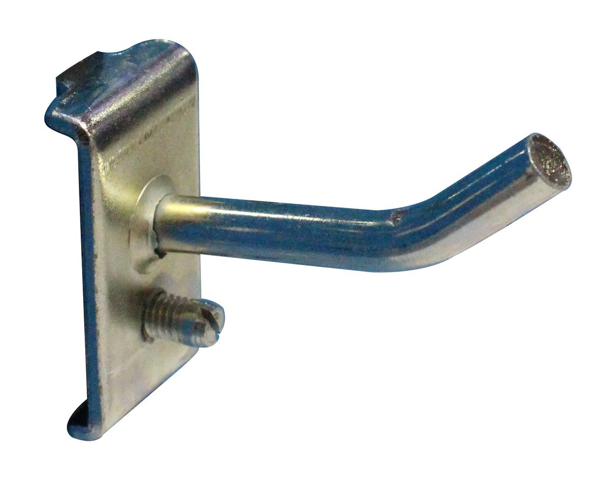 Værktøjskrog med længde 50 mm og krogdiameter Ø6 mm. Designet med enkelt bagplade og passer til hulplader med firkantede huller (9 x 9 mm). Centerafstand 34 mm og 38 mm.