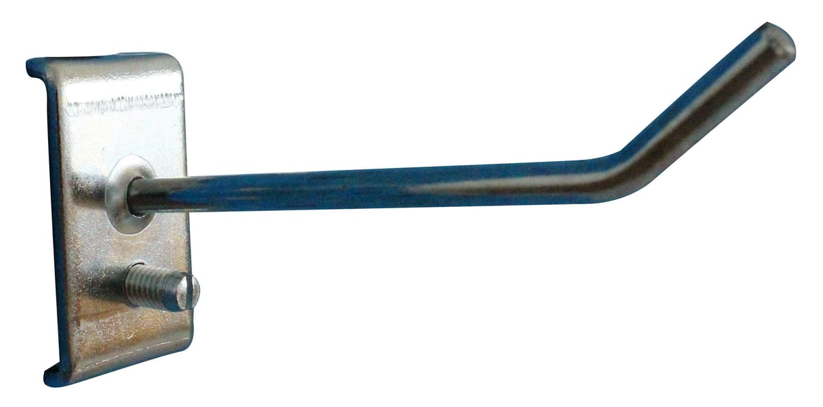 Værktøjskrog med længde 75 mm og krogdiameter Ø4 mm. Passer til hulplade med firkantede huller (9 x 9 mm) og har en centerafstand på 34 mm og 38 mm.