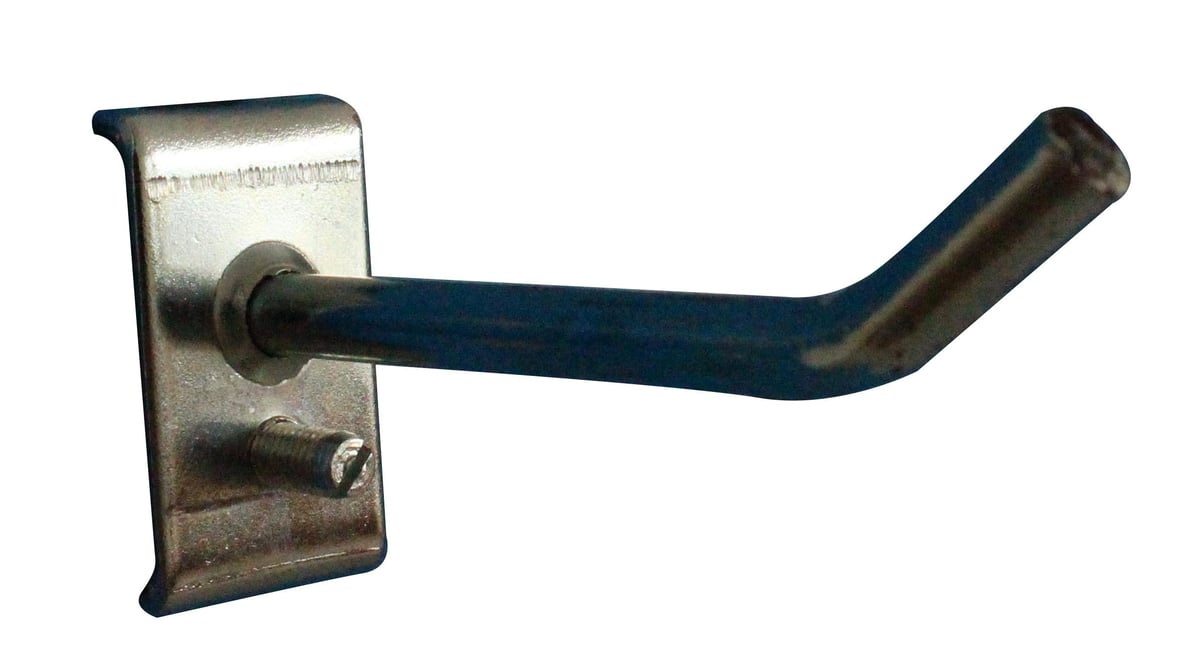 Værktøjskrog med længde 75 mm og krogdiameter Ø6 mm. Passer til hulplade med firkantede huller (9 x 9 mm) og har en center afstand på 34 mm og 38 mm.