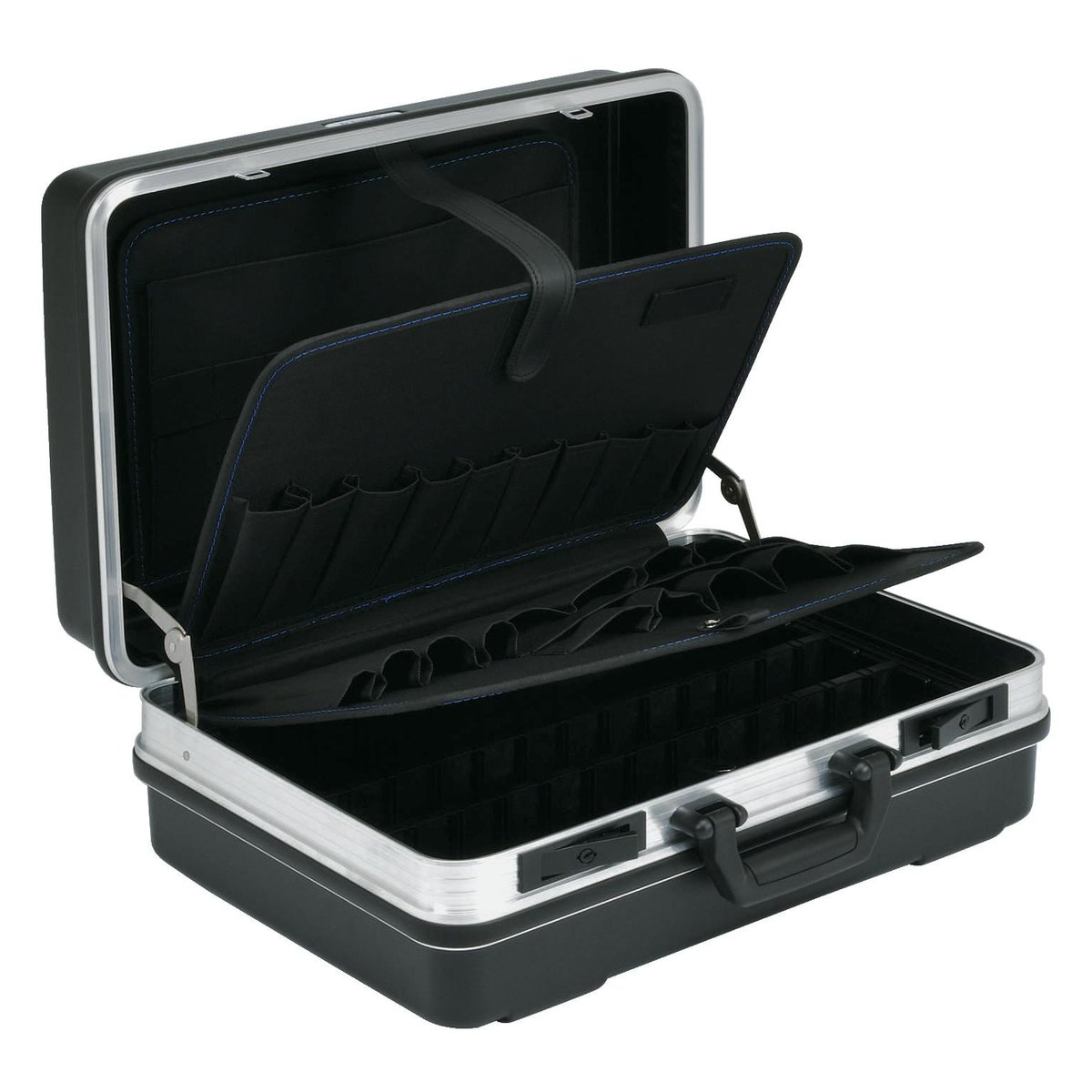 Denne værktøjskuffert er fremstillet af robust ABS-plast, der sikrer høj slidstyrke og lang levetid. Den robuste aluminiumsramme med slagkanter beskytter indholdet mod stød og skader under transport og opbevaring.