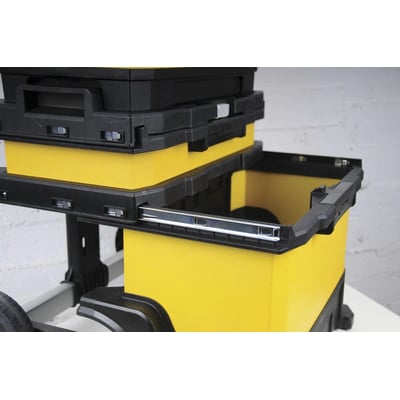 Denne STANLEY® mobile værktøjskasse er designet til at give dig et rullende værksted med nem adgang til dit værktøj. Den er ideel til både professionelle og gør-det-selv entusiaster.
