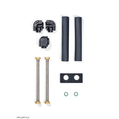 Komplet tilslutningssæt til aroTHERM plus varmepumper, inklusiv 2x425 mm rustfri stålrør (1.1/4") med omløbere og armaflex isolering.