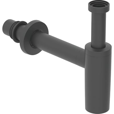 Geberit pungvandlås til håndvask med vandret afløb, gummimanchet og vægroset. Dimensioner: 40 mm, G=1 1/4, mat sort.