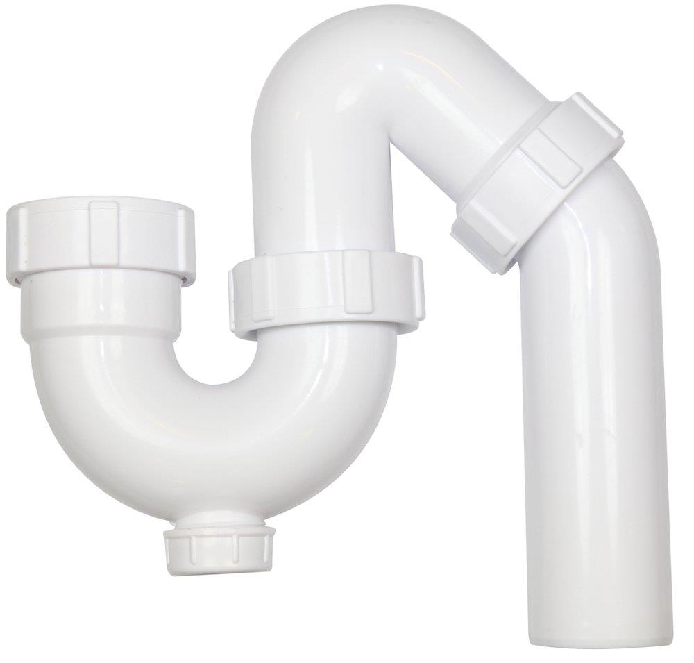 Vandlås til køkkenvask, 50 mm, med renseprop, plast, hvid.