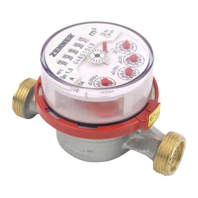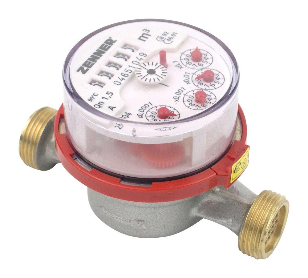 Énstrålet vandmåler til måling af varmtvandsforbrug. Kan installeres vandret og lodret. Drejelig tæller for optimal aflæsning. Forberedt for impulsaflæsning. Type: R50H R25V 10L ZR.