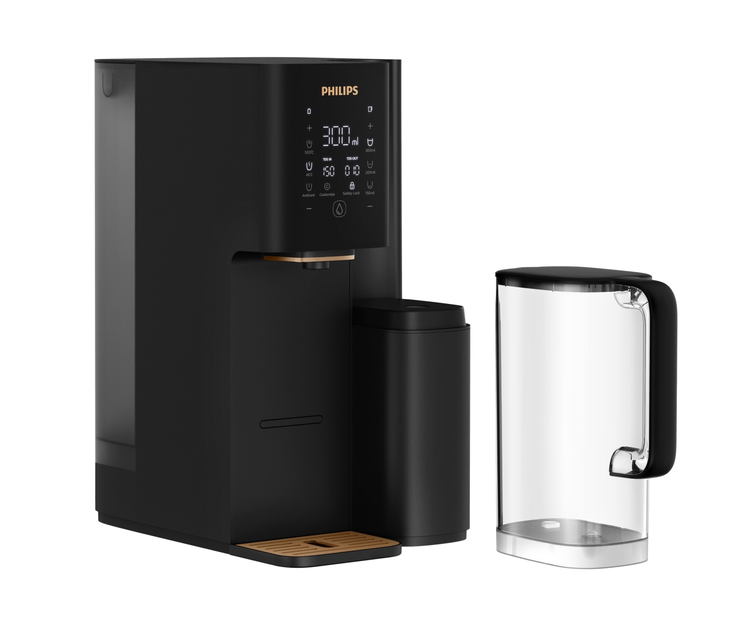 Praktisk vandsdispenser med filter, der leverer koldt og varmt vand. Nem at betjene og kræver ingen afløb.