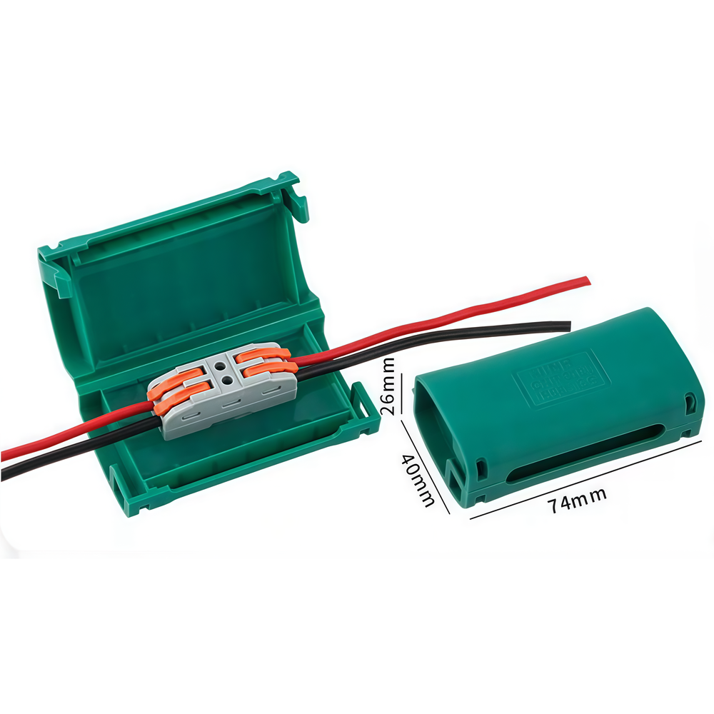 Praktisk gel samleboks til 2 ledninger. IP68-klassificeret og skrueløs muffe for nem tilslutning.