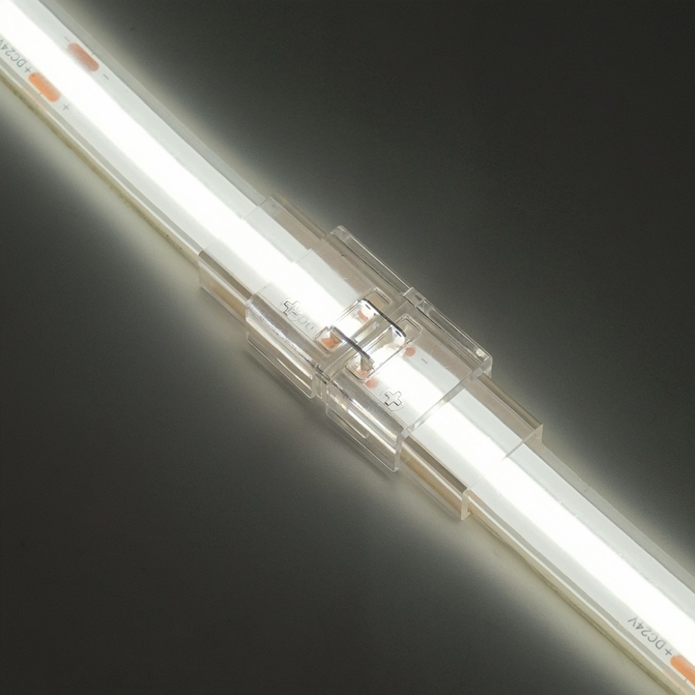 Vandtæt samler til 8mm enkeltfarvede LED strips. IP68-klassificeret og kompatibel med 5V-24V.