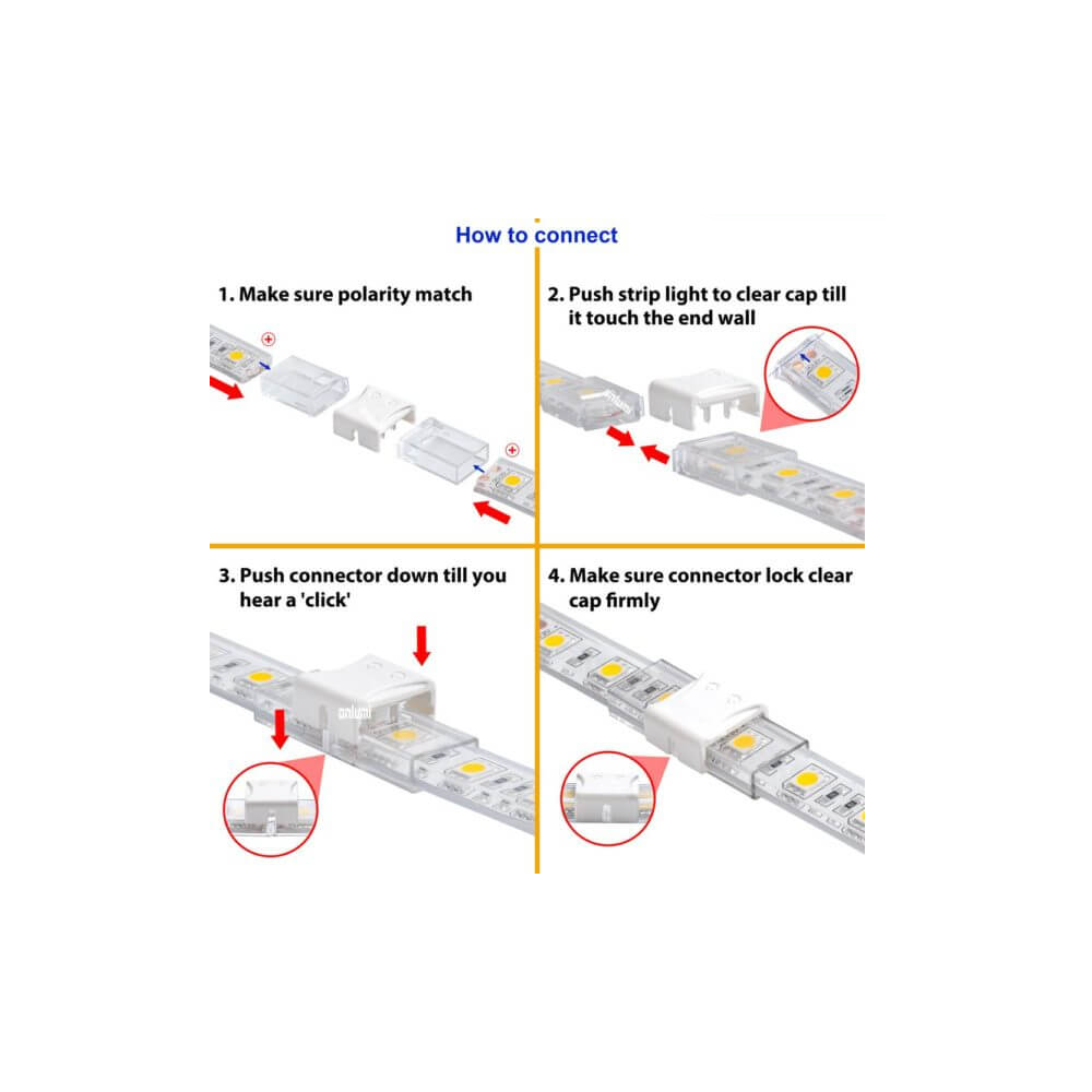 - Til enkeltfarvede LED strips: Optimeret til 8 mm brede enkeltfarvede LED strips.