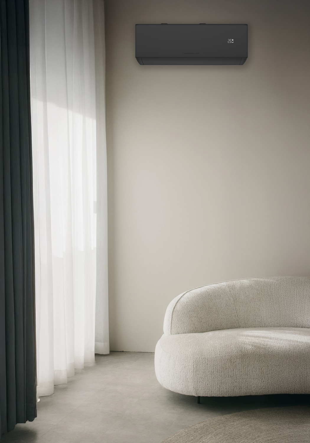 Effektiv varmepumpe/aircondition med WiFi og en effekt på 4,0kW. Sort indedel til diskret integration.